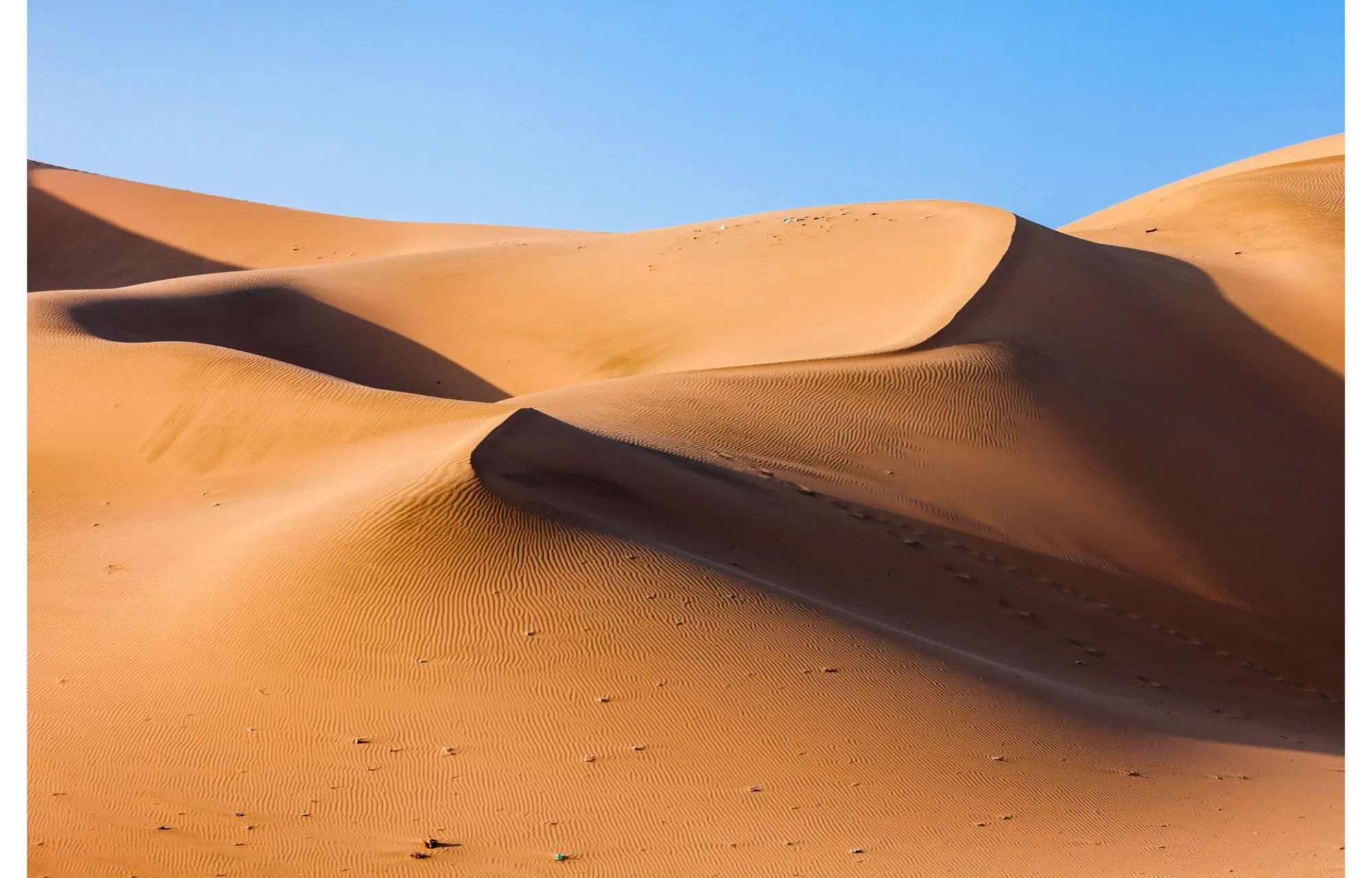 El almuerzo será un momento especial, a la sombra de los tamariscos, árboles resistentes que sobreviven en estas condiciones extremas. Tras un descanso, continuaremos hasta las dunas de Lahnaniche, donde el dorado de la arena se encuentra con el azul del cielo. Aquí montaremos nuestro campamento y disfrutaremos de un tranquilo anochecer en el corazón del desierto.